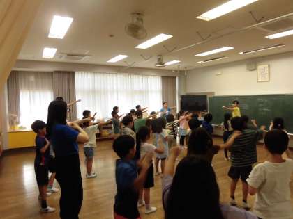 2年生はゲストティチャーの「せたがやパブリックシアター」の方たちと一緒に、みんなで劇を作る活動に取り組んでいました。子どものエネルギーが溢れていて、見ているほうも笑顔になるような活動でした。