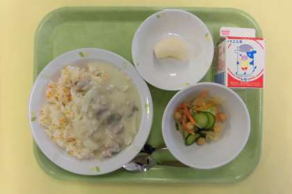 児童からは、「キャロットライスのクリームソースが濃厚でおいしかったです。」という感想がありました。