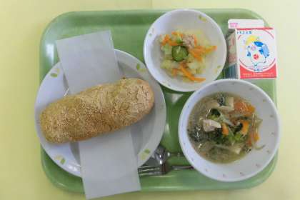 児童からは、「揚げパンのきなことパンが甘くておいしかったです。」との感想がありました。