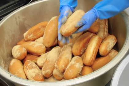 今日の主食はリクエストが多い揚げパンです。今日の揚げパンは、きなこをまぶしました。きなこは、大豆を炒って粉にしたものなので、栄養もたくさんあります。