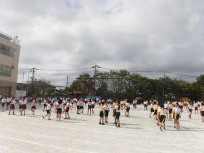 5年生は自分たちで作ったダンスです。この表現を作り上げる過程がとても貴重なものだと思います。笑顔で力いっぱい踊っている姿がとても楽しそうです。参観していた3年生から「かっこよかった。サビの踊りが上手だった」と感想をもらいました。
