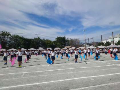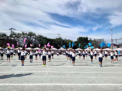 2年生の みんなでえがけ!一番星 旗を使った演技に大きな歓声がおこりました。きれいですね。