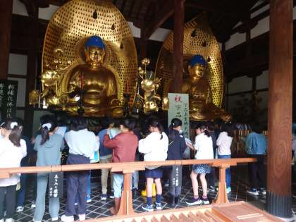 3年生の社会科見学です。6クラスを二手に分けて、九品仏浄真寺と郷土資料館を見学します。お昼は玉川野毛町公園で、お家の人が作ってくださったお弁当を感謝して食べました。