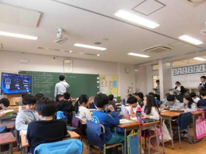 5時間目、他校の先生方も参加して4年生の理科の研究授業が行われました。子どもたちが学習問題を見出して、学級の学習問題を作るという時間でした。多くの先生方が参観するなか、子どもたちはよく考え、自分の意見を発表し合っていました。