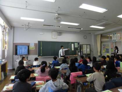 2年生のクラスにきていた教育実習の先生ですが、今週で実習が終わりとなります。今日はその研究授業が行われました。子どもたちは参観した大勢の先生に、驚いたり緊張したりしながらも、生き生きと学習に取り組んでいました。