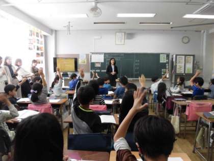 5時間目、2年生の研究授業があり、校内の先生方が大勢集まりました。自分の考えを隣同士で伝えたり、みんなの前で発表したりと、みんな積極的に学習に取り組んでいました。