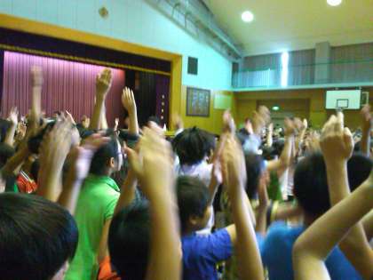 6月28日の音楽集会では、「夢見るジャンプ」を歌いました。ピアノとギターの伴奏で、ダンスの振り付けを付けて元気に楽しく歌いました。900人の手拍子とジャンプ。子どもたちが大好きな歌で一日が始まりました。