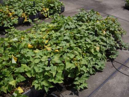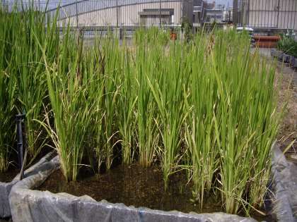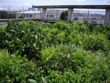 イネやさつまいも、枝豆。緑色濃い屋上の様子です。