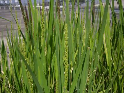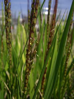 屋上で育てている稲に穂が出て、花が咲き始めました。稲の花は、朝の9時ごろからほんの数時間だけ咲きます。