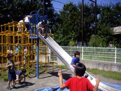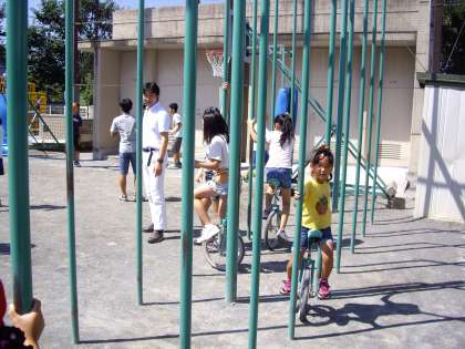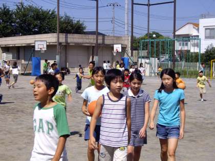 きれいな青空のもと、子どもたちは元気に遊んでいます。休み時間が終わることを知らせる音楽が流れると、子どもたちは一斉に校舎に戻ります。約束をよく守っています。