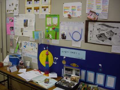 各学級の廊下や教室に夏休みの作品が展示されています。