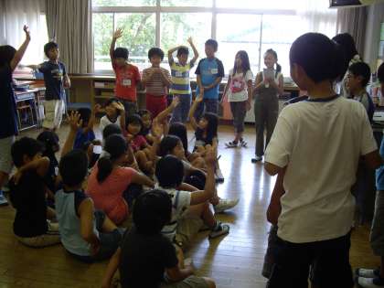 写真は、「だるまさんが転んだ」「ステレオゲーム」の様子です。