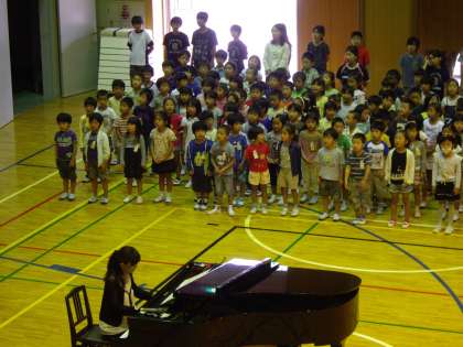全校児童が体育館に集まって「歌よ ありがとう」を歌いました。