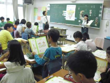 青果物健康推進協会の方々をゲストティーチャ−にお迎えし、食育の学習を行いました。「地元の野菜を知り、野菜博士になろう」と言うのが、この学習のめあてです。野菜に対する関心が深まりました。