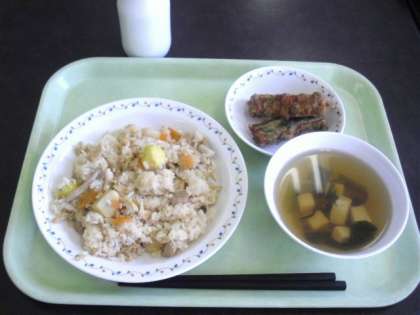 今日の「吹き寄せごはん」は、色づいた落ち葉が、風に吹き寄せられた様子をイメージしたごはんです。