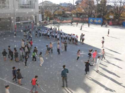 校庭では縄跳びが盛んに行われています。今日は暖かくいいお天気だったので、多くの子どもたちが校庭で縄跳びをしていました。12月の1週目は縄跳び週間です。それに向けて、各クラスが練習をしているのです。