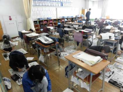 みんなが心を込めて文字を書いていました。貼りだされるのが楽しみですね。