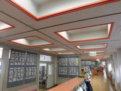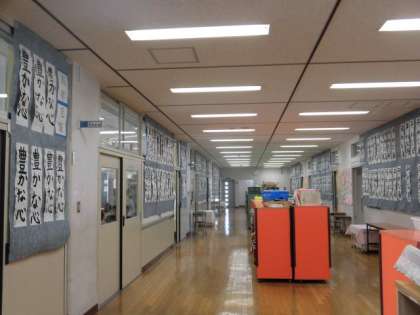 校舎内を回ってみると、各教室の前や廊下に、堂々と書き初めの作品が掲示されていました。全学年、心を込めて文字を書いているのが分かりますが、高学年の毛筆は特に圧巻です。新年の決意を文字に書いただろうなというのが伝わってきました。