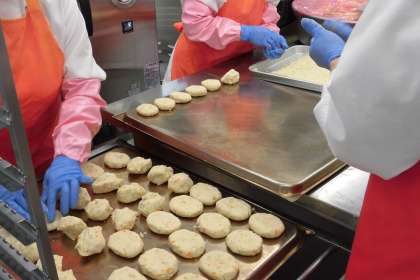 今日の主菜は、ゼリーフライです。ゼリーフライは、埼玉県の郷土料理です。じゃがいもとおからとねぎを混ぜ合わせて、衣をつけずに油で揚げたものです。名前の由来は、小判型に丸めた形が、小銭の形に似ていたことから、「ゼニ—フライ」と呼ばれていましたが、それがなまって「ゼリーフライ」に変わったそうです。