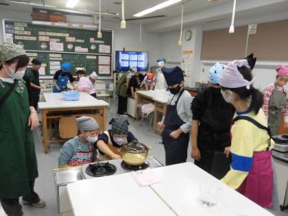 5年生が調理実習でご飯を炊いていました。班で協力して安全に気を付け、手際よく取り組んでいます。おいしいご飯が炊き上がり、満足していた子どもたちです。上手に炊けてよかったですね。