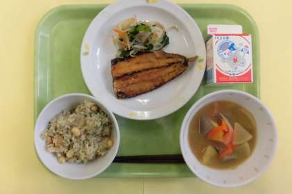 今年の節分は2月2日です。節分には豆をまいたり、鬼が苦手ないわしの頭を玄関に吊るしたりして鬼を追い払う風習が古くからあります。今日の給食では大豆入りの節分ごはんと、いわしの揚げびたしを作りました。