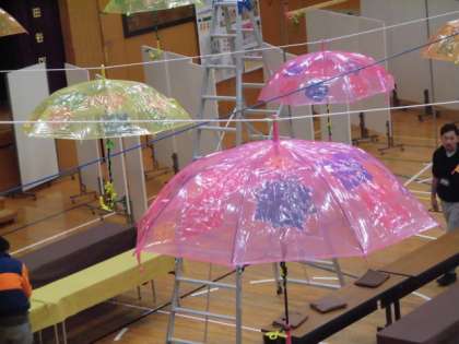 さて、今日から、展覧会の会場づくりが始まりました。子どもたちもお手伝いしてくれました。写真は、その予告です。来週の展覧会が楽しみですね。