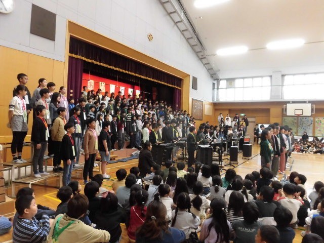 6年生を送る会がありました。6年生がステージの前の座席に着き、そのほかの学年が6年生に関するクイズや応援の気持ちを込めたダンス、歌などを披露しました。1年生から6年生へ力強いエールが送られたときには、みんな驚いていましたね。なかよし班でお世話になってきた1年生も、こんなに立派に成長した、と6年生のみんなも思ったのではないでしょうか。代表委員会や5年生全体が、特にこの会の運営を行いました。6年生の合唱「旅立ちの日に」を聴いて、卒業まであとわずか、ということが一層意識されました。「これからは、自分たち5年生がみんなを引っ張っていきます」という5年生の言葉も頼もしく思いました。