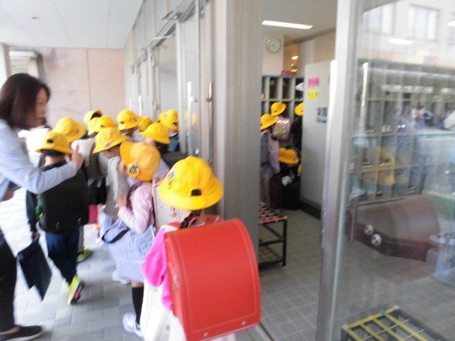 1年生が黄色い帽子を被って元気に登校してきました。昇降口付近ではお世話する6年生が迎えて、優しく手伝っています。「おはようございます」と声をかけると、少し戸惑いながらも「おはようございます」と返してくれました。にこっと笑顔を返してくれた1年生も多かったです。1年生の教室では担任の先生のお話を聞いて、支度を整えたり、あいさつをしたりしています。ある教室ではあいさつの声をかけてから、お辞儀をするというやり方を習って、すぐにそれを実行していました。