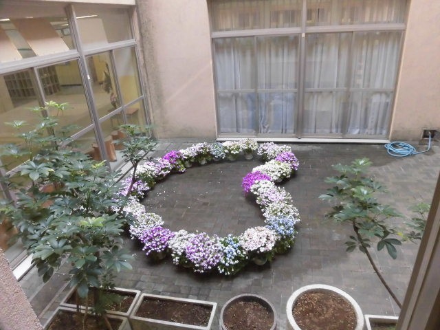 校庭の桜がほぼ葉桜となり、代わりに目に飛び込んできたのは、この鉢植えです。昇降口を入ってすぐのところに、卒業式や入学式に式場を飾ったサイネリア(シラネリア)の花が再利用されていました。子どもたちに知らせると「わあ」と喜んでいました。昨日はこんな形ではなく、置かれていました。どなたがこのように置いてくださったのでしょう・・・皆さん気付いていましたか?みんなの笑顔を引き出す、鉢植えの花々ですね。