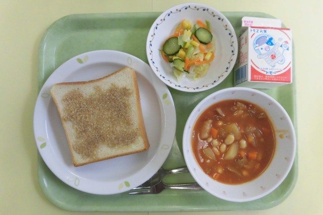 児童からは、「ポークビーンズの豆があまり好きではありませんが、スープの味が好きなので、おいしく食べることができました。」との感想がありました。