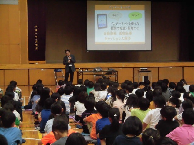 体育館で、セーフティ教室が行われました。一つは成城警察の方による連れ去り防止、万引き防止といった内容です。もう一つは携帯電話会社からゲストティーチャーをお招きしてネットリテラシーについてお話いただきました。特にネットリテラシーに関する内容では、実際にあった出来事を例に子どもたちにとって身近な話題でした。子どもたちはよく聞いて、よく考えていたと思います。ご家庭でも今日のことを話題にして、改めて自分の行動を振り返り、生活のなかで危険なことに合わないよう、話し合ってほしいと思います。