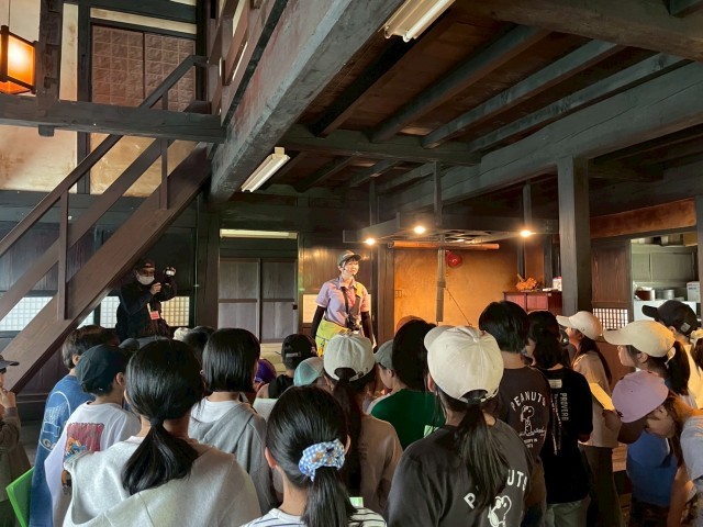5年生の川場移動教室は、みんな元気に進行しています。お昼ご飯のあと、川場の里山入門で、宿舎の周辺を散策しました。ガイドさんのお話しを聞きながら、環境について考えました。子どもたちはメモをしっかりとっています。