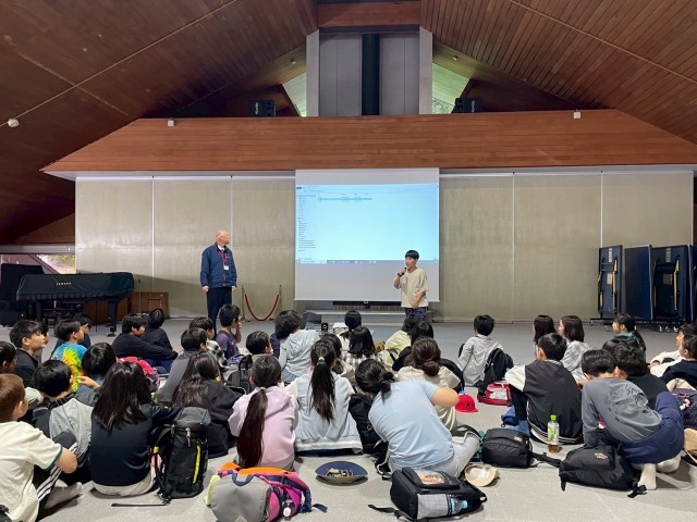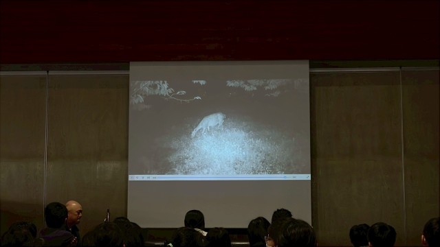 5年生川場移動教室、昨日仕掛けた野生動物を発見するためのカメラに何が写っているか.。まず、各クラスごとの設置場所について、その理由を発表しました。そして撮影されたものをかくにんしてみると