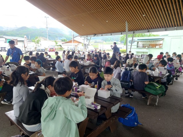 *5年生川場移動教室.田園プラザでお昼を食べて、いよいよ帰り道です。こちらは、曇り。帰るときに東京の雨もあかっているといいのですが。
