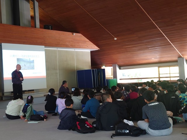 川場村観光大使の確認のあと、川場の野生動物プログラムが始まりました。センサーカメラを各クラスで相談して設置します。みんなで相談して決めるときには、その考えの根拠を離して、話し合わなくてはいけません。