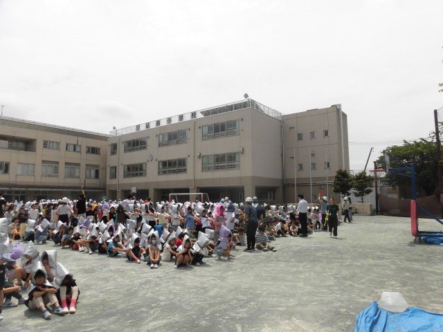 今日は月に一度の避難訓練がありました。休み時間に大きな地震が起こったという想定での避難です。休み時間なのではじめから校庭にいた子、教室にいた子など、先生のいないところで放送を聞いて、避難行動や校庭避難をするという内容でした。いつの避難訓練でも情報を正しくつかむ、ということが大切です。もし大きな地震に驚いて大騒ぎになったり、不確かな情報で不安になって命を守る行動ができなくなったりしないよう、災害に備えるという気持ちをもつようにしています。学校で避難訓練があったときには、家に帰ってから家族といざというときの行動を確認してほしいと、子どもたちに伝えました。