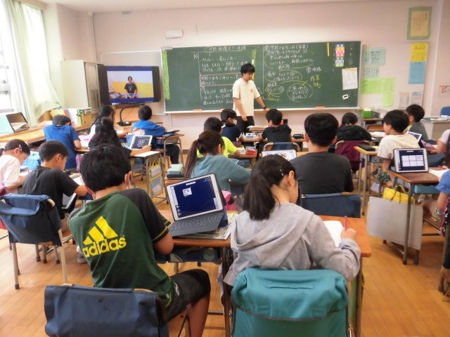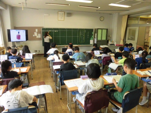 梅雨の晴れ間の一日、週末で子どもたちに疲れが見える頃です。3年生、4年生の授業で、タブレット端末が効果的に使われています。ICTを活用するとはいっても、ノートや学習プリントに自分の考えを書いたり、まとめたりしながら思考を深めるということも疎かにしていません。場に応じて子どもたちは切り替えて、学習に取り組んでいました。授業時間いっぱい、集中している姿がありました。