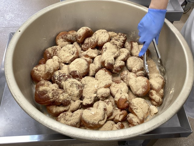 今日の主食は、リクエストの多い揚げパンです。今日はきな粉をまぶした揚げパンにしました。