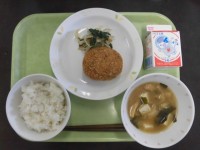 ★今日の献立・麦ごはん・肉じゃがコロッケ・おひたし・みそ汁・牛乳 今日の給食は、...