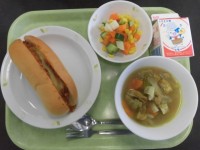 ★今日の献立・チリチーズコッペパン・たらのブイヤベース・マセドアンサラダ・牛乳 ...
