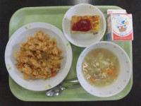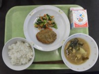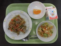 ★今日の献立・チキンライス・スペイン風オムレツ・ABCスープ・牛乳 今日の副菜は...