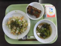★今日の献立・五目ちらしずし・ちくわの磯辺揚げ・菜の花のすまし汁・牛乳 今日は、...