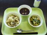 *豚肉とごぼうのごはん *きのこ入り煮びたし *白玉しるこ *牛乳
