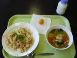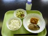 *さつまいもごはん *ぶりの照り焼き *野菜のごまだれがけ *みかん *牛乳