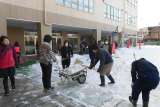 雪で校庭や第二校庭、屋上などが使用できないため、朝や放課後に職員が雪かきを行っ...