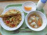 全国学校給食週間、北海道の郷土料理より ごはん 鮭のチャンチャン焼き(北海道)...
