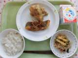 ○今日の献立 ・子ぎつねごはん ・牛乳 ・わかさぎの天ぷら ・野菜のゆ...