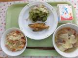 ○今日の献立 ・磯おこわ ・牛乳 ・じゃがいものそぼろ煮 ・ごま酢かけ...