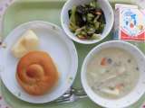 ○今日の献立 ・ミルクパン ・牛乳 ・クラムチャウダー ・わかめサラダ...