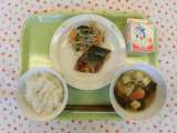 ★今日の献立 ・麦ごはん ・牛乳 ・さばの韓国風焼き ・野菜ナムル ・わかめス...